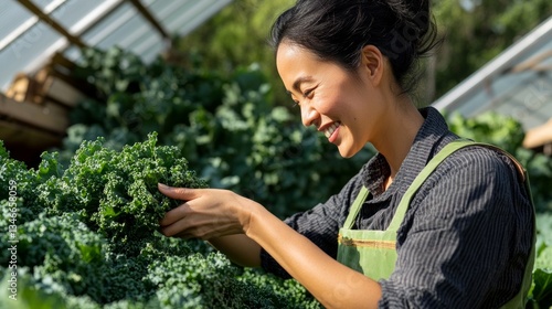© iuricazac, Obraz premium Person tending to plants, surrounded by greenery.