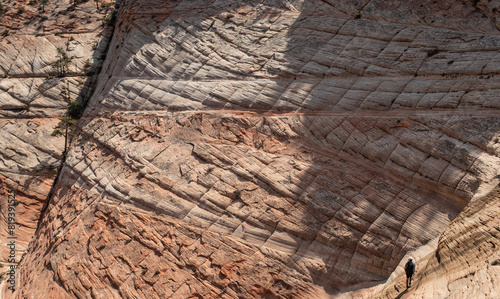 © Austin, Obraz premium Person walking near rock wall