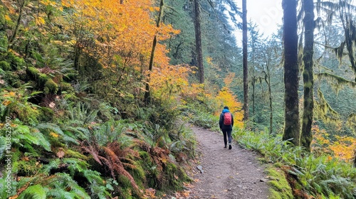 © PalaG, Fototapeta premium Person Walking on a Path Surrounded by Fall Foliage