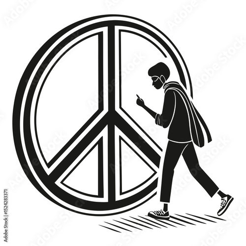 © MST CHIN BANU BEGUM, Obraz premium Person walking past giant peace symbol illustration