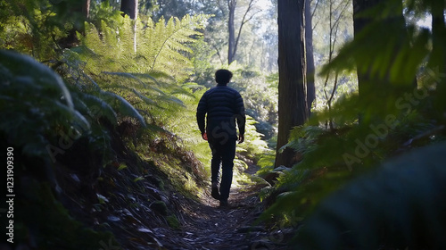 Fototapeta premium Person Walking Peacefully on Forest Trail