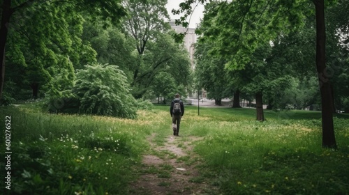 © ThisDesign, Obraz premium person walking through a city park or green space generative ai