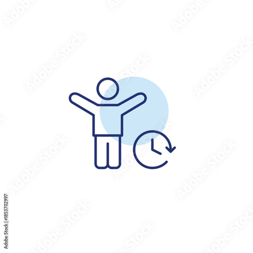 Fototapeta premium Person with arms raised and clock. Work-life balance, achievements, motivation and success. Pixel perfect, editable stroke vector icon