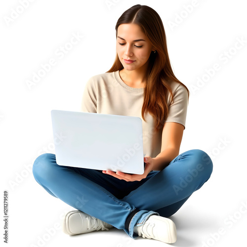 © Sapla, Naklejka premium Person with laptop,Woman with laptop