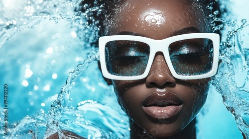 Fototapeta premium Person with white goggles, water splashing, dynamic shot