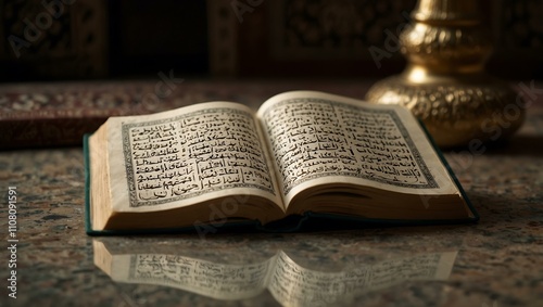 © claudunia, Fototapeta premium Personal reflection with the Quran symbolizing Islam.