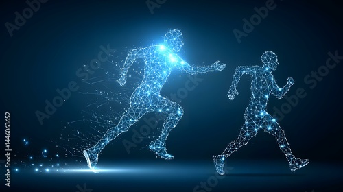 Naklejka premium personal trainer guiding a transparent human figure through bodyweight exercises