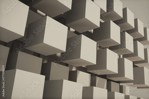 © Designer-CHAN, Obraz premium Perspective Blocks Dynamic Dimensions Abstract Pattern
