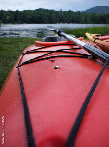 © nextrecord, Naklejka premium Perspective of Lake in Upstate New York From Red Kayak