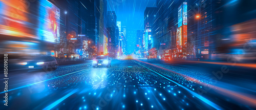 Obraz premium Perspective view on car ride on the road , have motion blur speed on background
