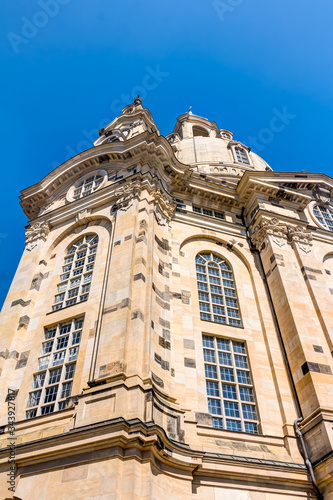© mije shots, Fototapeta premium Perspektivische Ansicht der Frauenkirche in Dresden