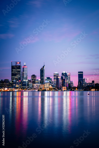 Naklejka premium Perth, Australia - Mar 04 2020: The Perth City skyline during dawn. Perth is the capital of Western Australia