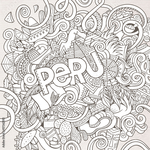© balabolka, Fototapeta premium Peru hand lettering and doodles elements background