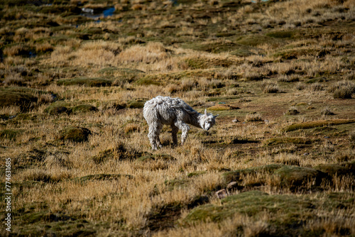 © Alvise, Fototapeta premium 2023 8 17 Peru llama grazing 55