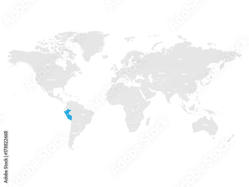 © pyty, Fototapeta premium Peru marked by blue in grey World political map. Vector illustration.