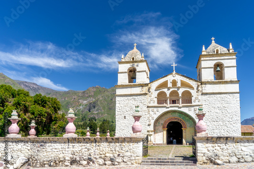 Fototapeta premium Peru, white church in the small village of Yanque in the Colca Canyon