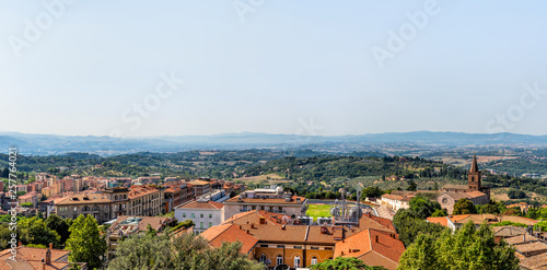 Obraz premium Perugia panorama in Umbria, Italy cityscape skyline view of church tower and rooftops of town village in summer landscape