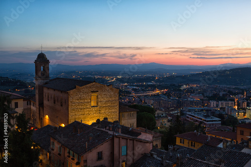 © Shchipkova Elena, Naklejka premium Perugia, view of the old city and Chiesa di Santo Spirito in night, Umbria, Italy