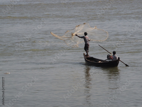 © Javier Cuadrado, Naklejka premium Pescador lanzando la red en Mingun (Myanmar)