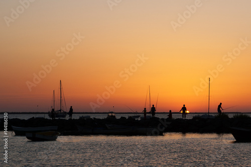 © teninopia, Fototapeta premium pescadores en la puesta de sol