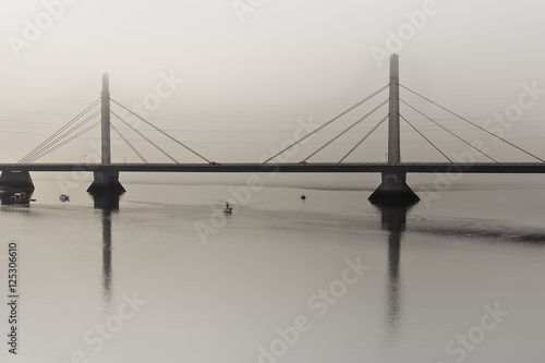 Naklejka premium Pescadores entre la niebla