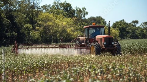 © Rajab, Fototapeta premium pesticides, sprayed, tractor, soybean, field, agriculture, farming, crops, farmland, machinery, spray, mist, rural, cultivation, agribusiness, harvest, food production, plant protection, farmland, eco