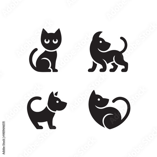© rs_studios, Naklejka premium Pet Logo Silhouette Bundle with Dogs Cats Paw Prints and Pet Care Icons