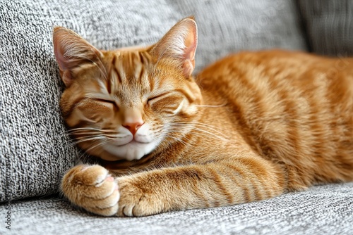 Fototapeta premium pet orange cat relaxing on couch