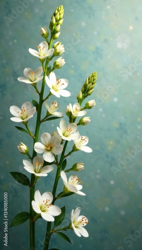 © OneWayPhoto, Obraz premium Petal-covered stems with delicate white flowers, botanical, greenery