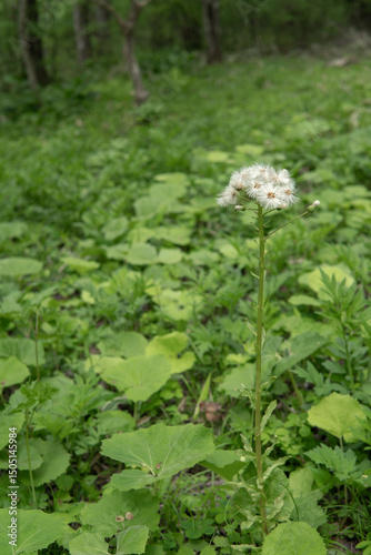 Obraz premium 日本::種ができたフキ(Petasites japonicus)の全体【山野草】長野県・5月