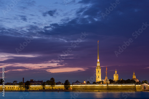 © zdebskiy, Fototapeta premium Peter and Paul Fortress at night