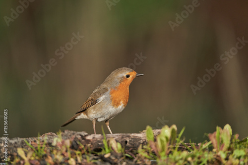 © JOSE ANTONIO, Fototapeta premium petirrojo europeo​ (Erithacus rubecula) posado en el suelo
