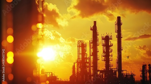 Obraz premium Petrochemical Plant at Sunset with Glowing Pipes