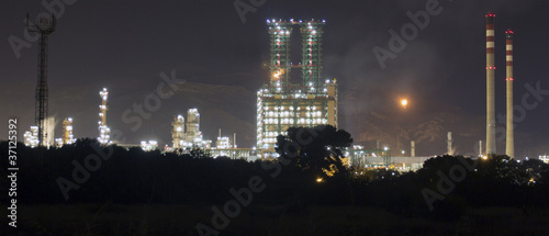 Fototapeta premium Petrochemical refinery at night with full moon light