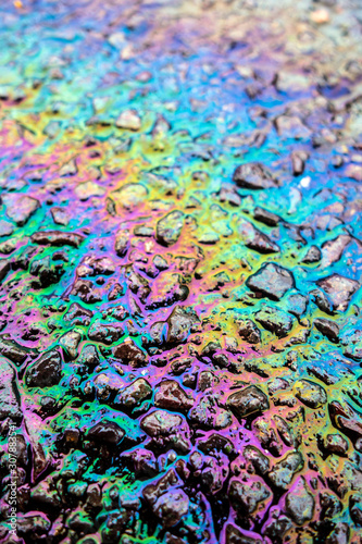 Fototapeta premium Petrol Oil Pollution Rainbow Gasoline Leak on Pavement