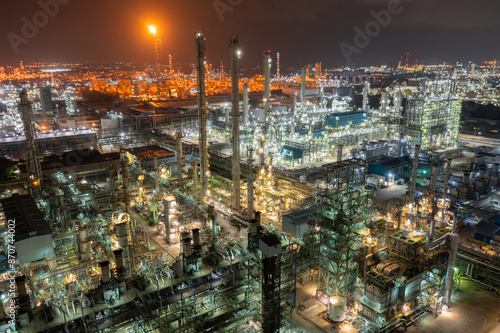 Fototapeta premium Petroleum chemical factory illuminated at night