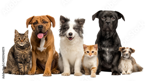 © PNG King, Fototapeta premium Pets sitting together on a transparent background in a studio