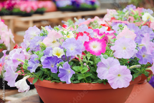 © YuiYuize, Obraz premium Petunia in the pot, Mixed color petunia
