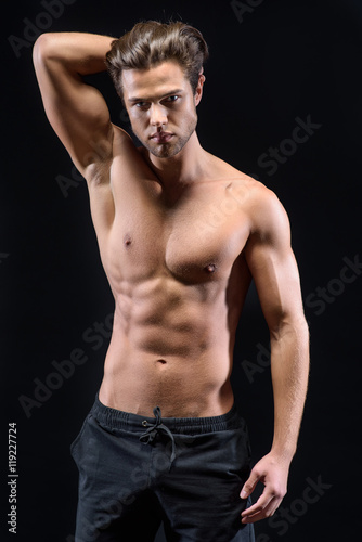 © Yakobchuk Olena, Fototapeta premium Pewnie młody człowiek pozuje z pasją