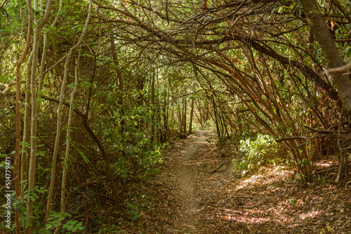 Obraz premium Pfad im Wald der Macchia della Malagona bei Sonnenschein am Abend