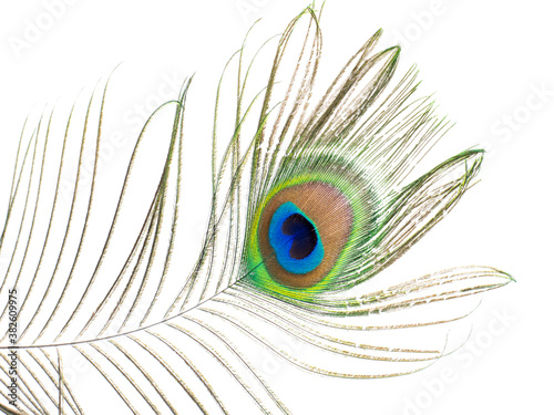 Fototapeta premium Pfauenfeder isoliert auf weißen Hintergrund