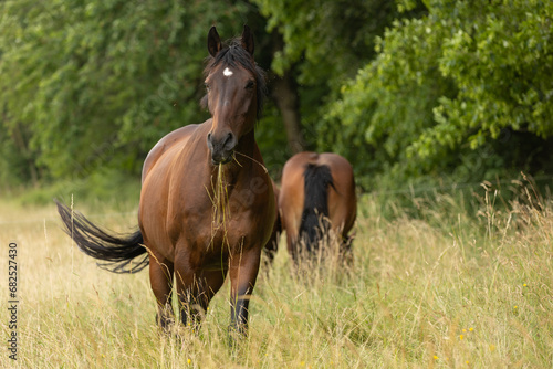 © Nadine Haase, Fototapeta premium Pferd frißt im hohen Gras