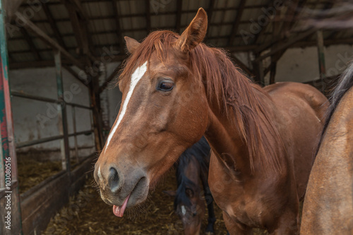 Fototapeta premium Pferd steckt die Zunge heraus, bäh!