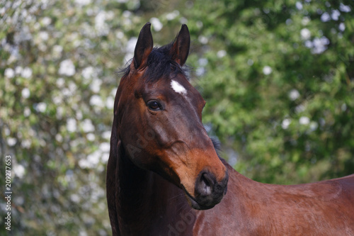 © Nadine Haase, Obraz premium Pferd vor Apfelbäumen
