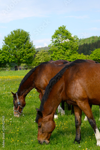 © Peter Oetelshofen, Fototapeta premium Pferde auf der Weide