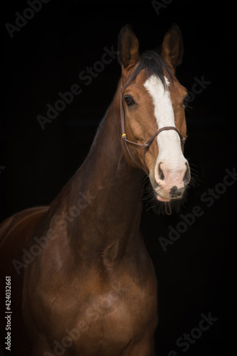 © Nadine Haase, Fototapeta premium Pferdeportrait vor dunklem Hintergrund