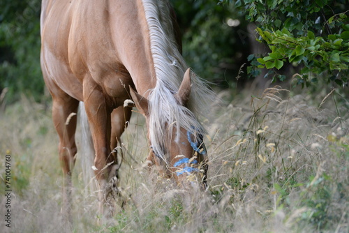 Obraz premium Pferdesommer. Schönes blondes Pferd unter Bäumen