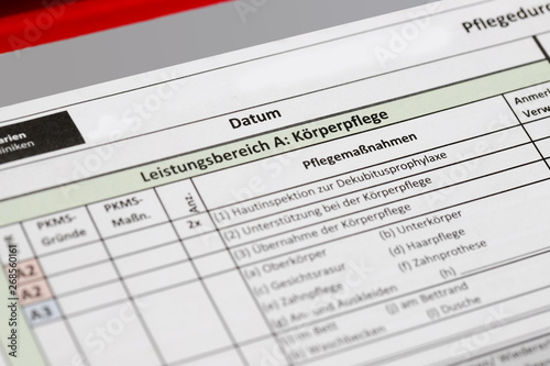 Obraz premium pflegedurchführungsnachweis blatt krankenhaus körperpflege