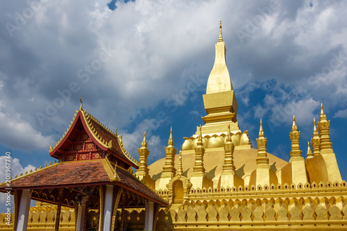 Naklejka premium Pha That Luang temple. Golden stupa. Vientiane. Laos.