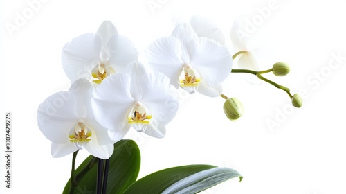 Obraz premium Phalaenopsis Orchids: Stunning White Orchid Flowers in Flower Pot on Isolated White Background